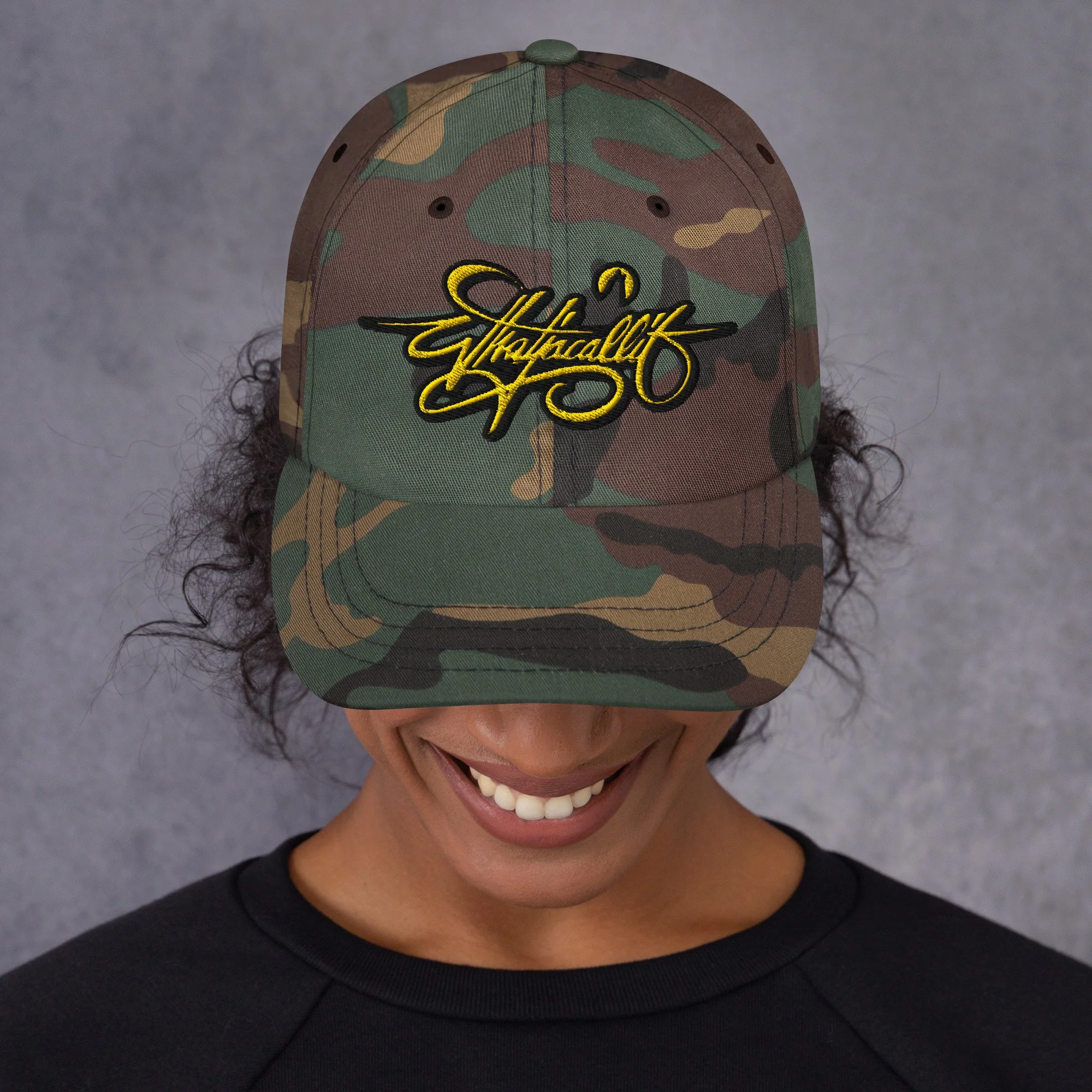 WHATJACALLIT ORIGINALS › Whatjacallit Dad Hat Whatjacallit Dad Hat $23.00 • Dads only. • 100% chino cotton twill • Green Camo color is 35% chino cotton twill, 65% polyester • Unstructured, 6-panel, low-profile • 6 embroidered eyelets • 3 ⅛” (7.6 cm) crown • Adjustable strap with antique buckle • Blank product sourced from Vietnam or Bangladesh • Dads only. • 100% chino cotton twill • Green Camo color is 35% chino cotton twill, 65% polyester • Unstructured, 6-panel, low-profile • 6 embroidered eyelets • 3 ⅛” (7.6 cm) crown • Adjustable strap with antique buckle • Blank product sourced from Vietnam or Bangladesh Add To Cart Added!